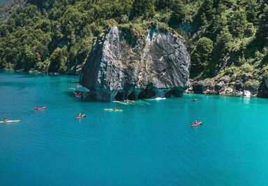 Itinerario sugerido: Jornada dedicada a la visita del Lago General Carrera. Podrán realizar la inolvidable excursión en barco hacia las Capillas de Mármol, un santuario natural donde las aguas turquesas del lago han esculpido, a lo largo de los milenios, cavidades y formaciones de mármol de una belleza excepcional. Esta navegación les permitirá observar de cerca estas grutas de reflejos azulados, uno de los sitios más emblemáticos de la región. Alojamiento en Puerto Guadal.